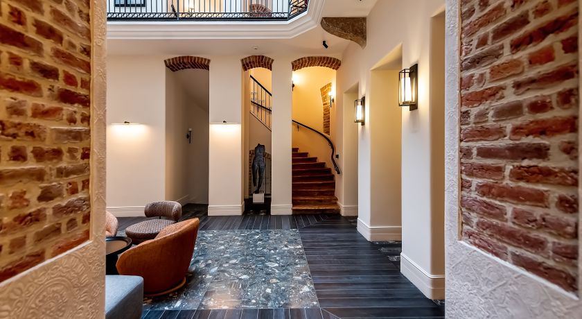 La interior, atmosfera este completată de cărămizile originale din 1767, mesele de decor realizate manual din lemnul vechi al clădirii și scările istorice păstrate intacte.